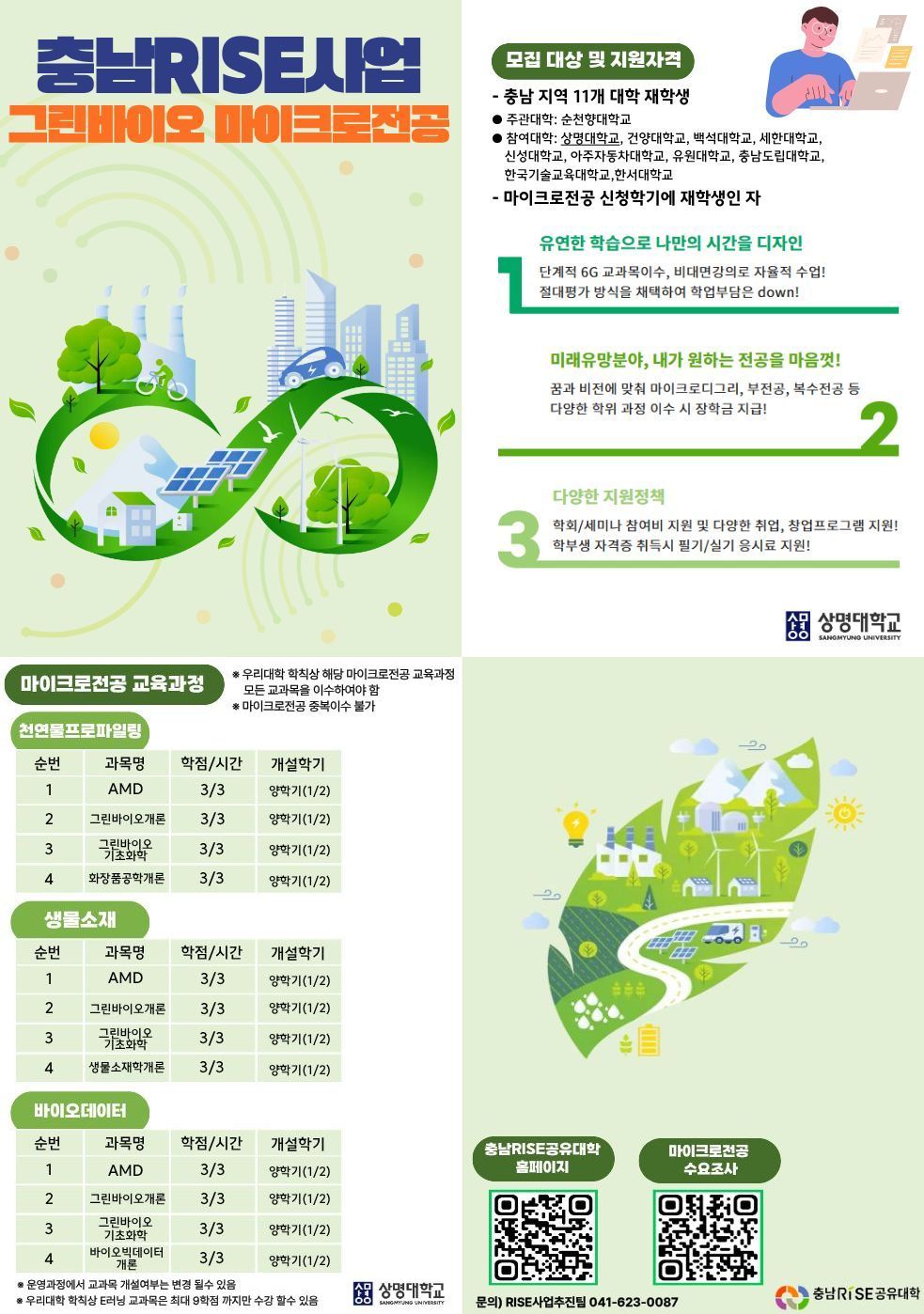 [충남RISE] 2026학년도 그린바이오 마이크로전공 교육과정 안내